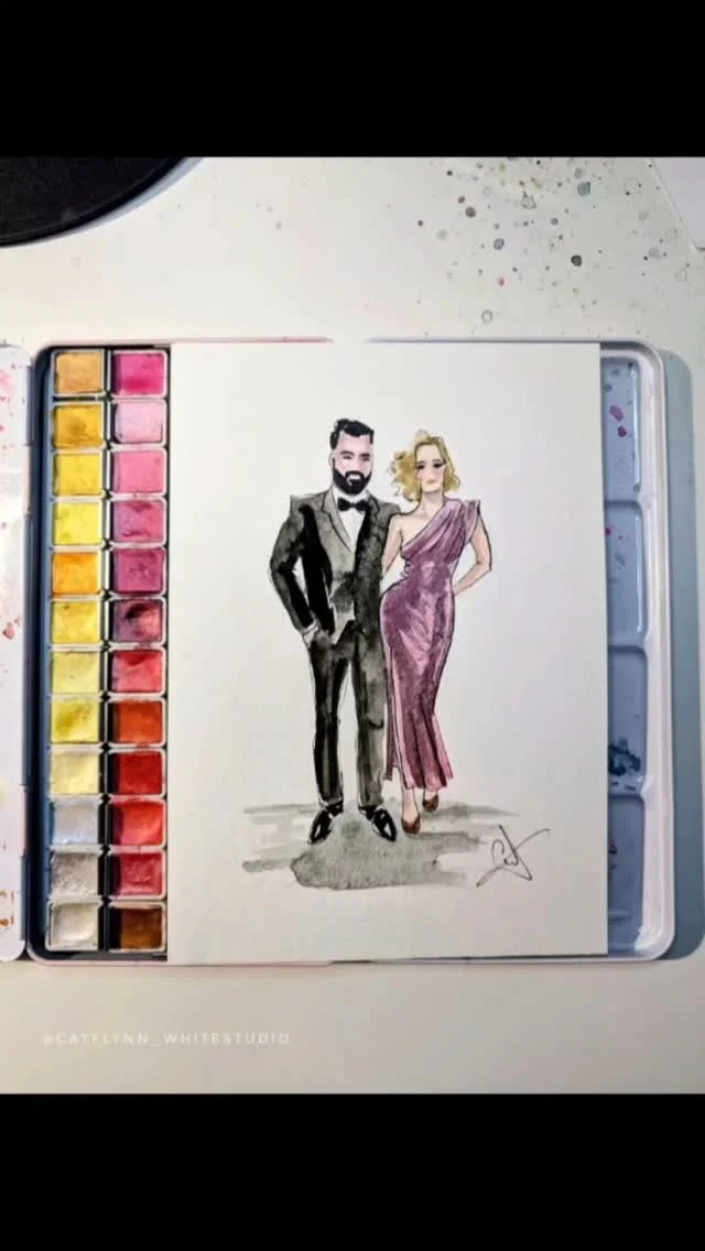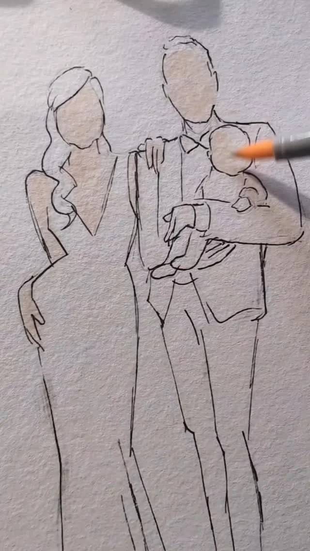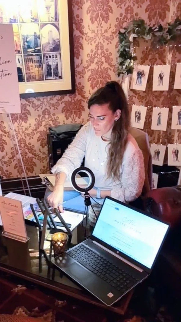 Having years of experience sketching wedding dress illustrations, creating bespoke wedding invitations and stationery, and drawing wedding portraits, progressing to live illustration is an exciting adventure for me.